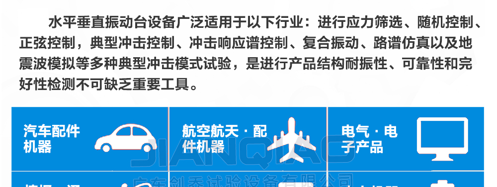 產(chǎn)品型號(hào):JQA-102-240 品牌:劍 喬 用途:該水平垂直振動(dòng)臺(tái)可模擬再現(xiàn)正弦、隨機(jī)、諧振搜尋與駐留、典型沖擊和道路仿真等模式,符合:(MIL-STD,DIN,ISO,ASTM,IEC,ISTA,GB,GJB,JIS,BS等國(guó)家及國(guó)際測(cè)試標(biāo)準(zhǔn))咨詢熱線:13829135130